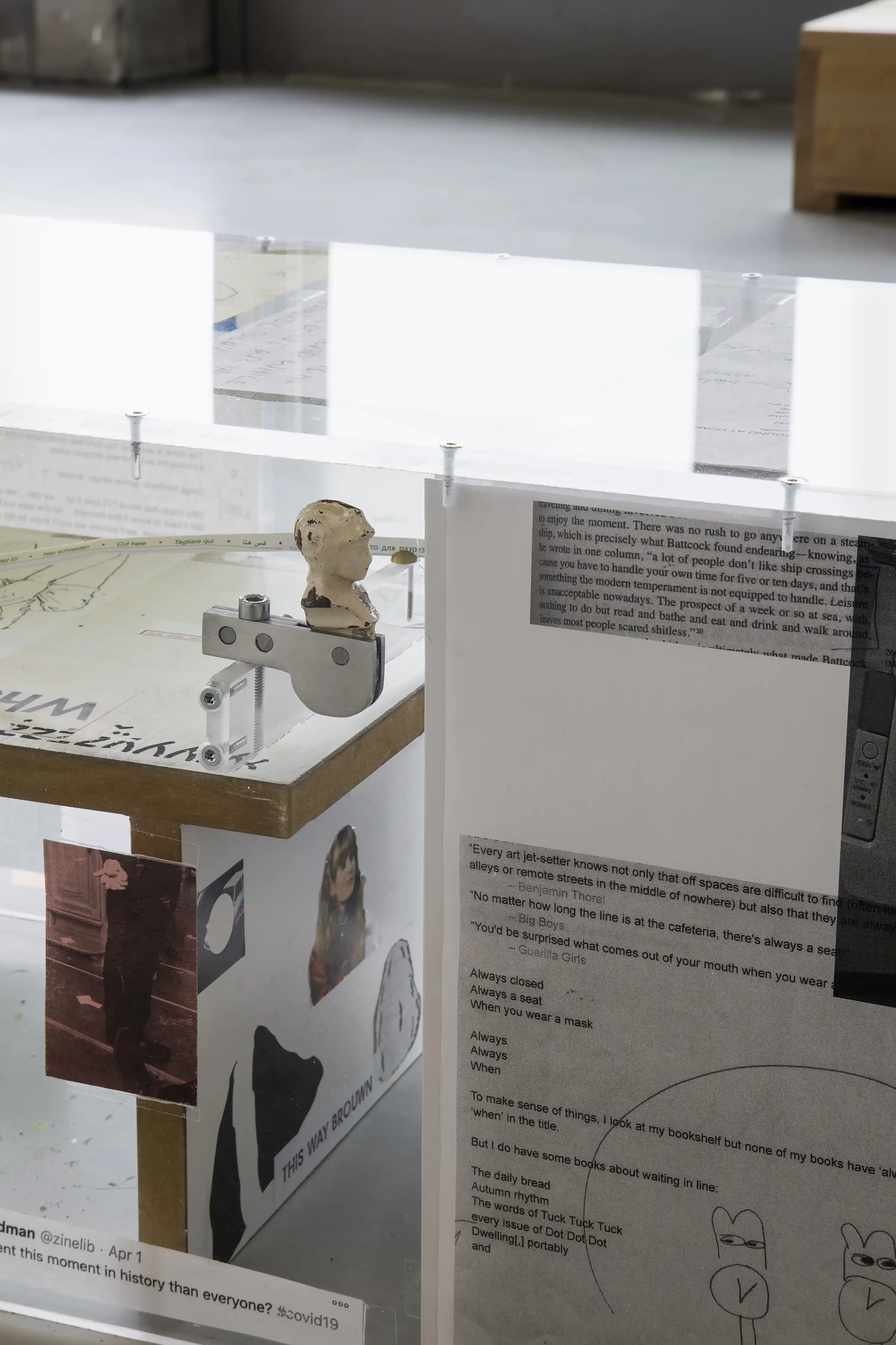 “For this to unfold, it depends in some part on a number of sympathetic factors that are fulfilled: the publishers are gainfully employed at an institution, have mailroom privileges and are able to depend on a network of writers/ designers/ artists who can write a letter. This dependency has something to do with mutualism? (Soft) parasitism? Or, as Nils Norman, co-initiator of the artist’s group ‘Parasite’ (1997—1998) called it, “to piggyback [...] institutions utilising the host institutions’ infrastructure in exchange for content provision.”A sense of where you are, 2021
